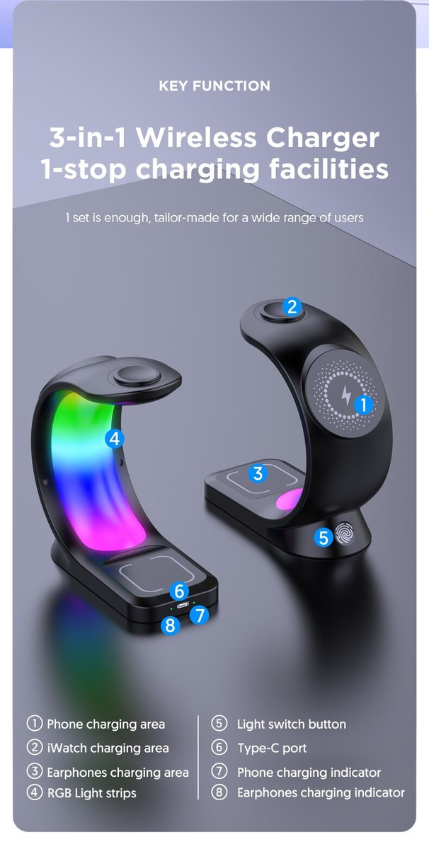 4 In 1 Magnetic Wireless Charger Fast Charging For Smart Phone Atmosphere Light Charging Station For Airpods Pro I-phone Watch